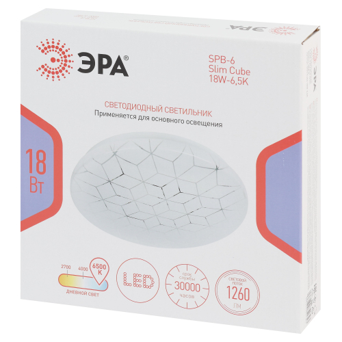 Светодиодный светильник ЭРА SPB-6 Slim Cube 18W-6,5K — современное и функциональное решение для освещения жилых и коммерческих помещений.