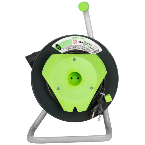 Удлинитель силовой ЭРА GREEN LINE на пластиковой катушке GAZ-2x0.75-20m, 1 розетка без крышки - IP 20 без заземления. Провод 20м ПВС 2х0,75мм2. Мощность 6А/1300Вт. Используется для работы на строительных площадках или дачных участках. Удобен при работе с приборами, находящимися удаленно от стационарной розетки. Например, газонокосилки, электрические, пилы, триммеры или электродрели. Рама удлинителя сделана из высокопрочной стали, а пластиковой корпус катушки выполнен с применением негорючих добавок.