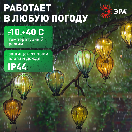 Садовая гирлянда Воздушные шарики на солнечной батарее 3,8 м (длина рабочей части 1,8 метров) 10 LED ЭРА ERASF23-21