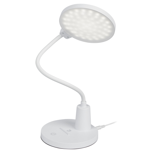 Настольный светильник со светодиодами (LED) в качестве источников света. Нейтральный белый свет - цветовая температура 4000К. Сенсорный переключатель на основании. Трехступенчатый диммер для регулировки яркости. Высокая гибкая стойка.
