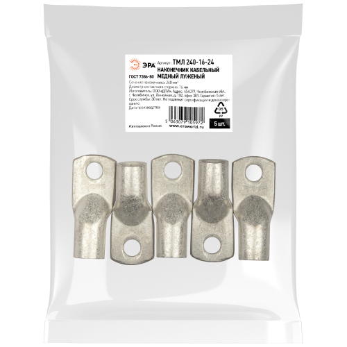 Силовые наконечники ЭРА серии ТМЛ произведены в соответствии с ГОСТ 7386-80.
