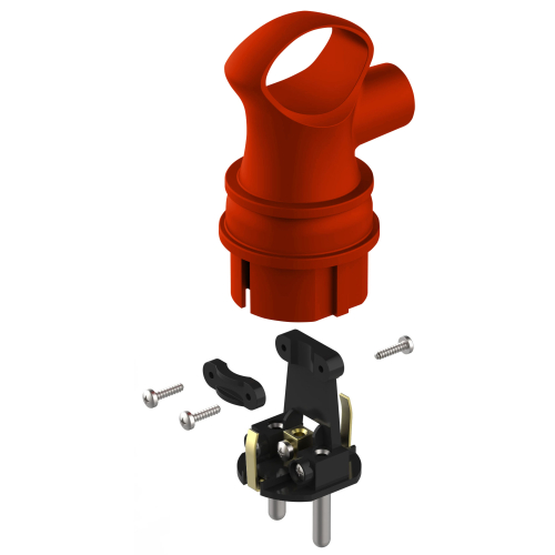 Угловая красная каучуковая вилка с кольцом из серии каучуковых разъёмов ЭРА российского производства. Имеется аналог в чёрном цвете. Рассчитана на нагрузку до 16 А и позволяет подключать кабель КГ сечением до 3x2.5 мм². Вилка с заземлением.