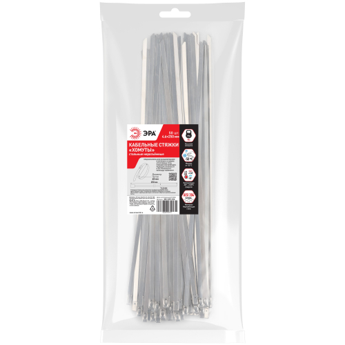 Кабельные стяжки (хомуты) ЭРА из нержавеющей стали предназначены для бандажирования и крепежа в условиях агрессивных сред, повышенной вибрации, радиации, влажности и экстремального перепада температур.