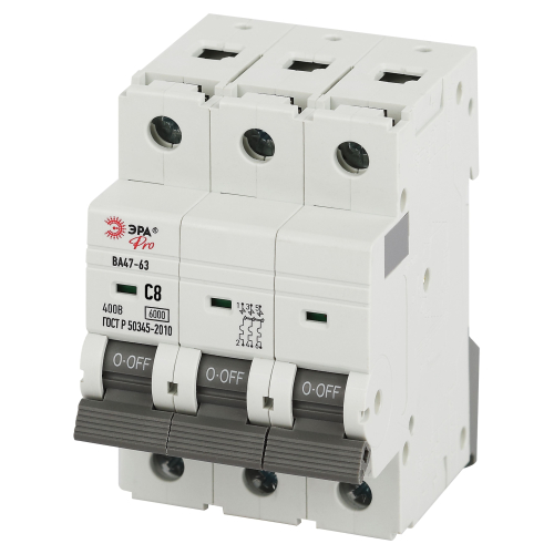 Автоматический выключатель - фконтактный коммутационный аппарат, способный включать токи, проводить их и отключать при нормальных условиях в цепи, а также включать, проводить в течение нормированного (заданного) времени и автоматически отключать токи при нормированных ненормальных условиях в цепи, таких, как токи короткого замыкания. Автоматические выключатели бывают одно-, двух-, трёх- или четырёхполюсными и имеют следующие конструктивные узлы: главную контактную систему, дугогасительную систему, привод расцепляющего устройства, расцепители. Автоматические выключатели ВА47-63 предназначены для защиты распределительных и групповых цепей, имеющих различную нагрузку: электроприборы, освещение выключатели с характеристикой В; двигатели с небольшими пусковыми токами (компрессор, вентилятор) выключатели с характеристикой C; двигатели с большими пусковыми токами (подъемные механизмы, насосы) выключатели с характеристикой D.