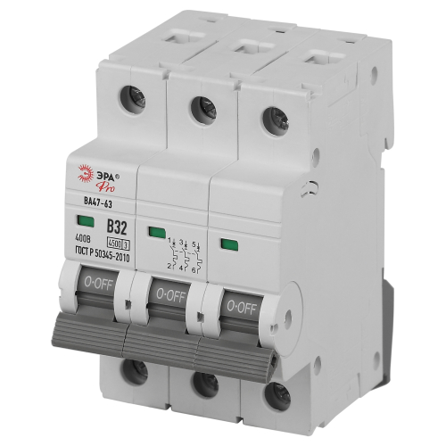 Автоматический выключатель - контактный коммутационный аппарат, способный включать токи, проводить их и отключать при нормальных условиях в цепи, а также включать, проводить в течение нормированного (заданного) времени и автоматически отключать токи при нормированных ненормальных условиях в цепи, таких, как токи короткого замыкания. Автоматические выключатели бывают одно-, двух-, трёх- или четырёхполюсными и имеют следующие конструктивные узлы: главную контактную систему, дугогасительную систему, привод расцепляющего устройства, расцепители. Автоматические выключатели ВА47-63 предназначены для защиты распределительных и групповых цепей, имеющих различную нагрузку: электроприборы, освещение выключатели с характеристикой В; двигатели с небольшими пусковыми токами (компрессор, вентилятор) выключатели с характеристикой C; двигатели с большими пусковыми токами (подъемные механизмы, насосы) выключатели с характеристикой D.