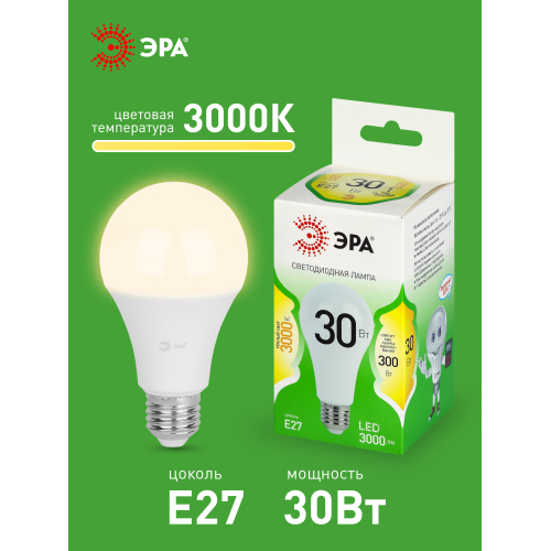 Светодиодная лампа ЭРА LED A65-30W-830-E27 GL серии Green Line — это мощный и энергоэффективный источник света, заменяющий традиционные лампы накаливания. Лампочка с цоколем E27 и потребляемой мощностью 30 Вт излучает теплый белый свет (3000K) без мерцания. Увеличенная форма A65 (груша) и стандартный цоколь E27 позволяют использвать лампу в люстрах, потолочных светильниках, торшерах и бра. Высота лампы: 130 мм. Работает от сети 220 В, эквивалентна 300 Вт лампе накаливания. Светодиодные лампы ЭРА отличаются высокой яркостью, долгим сроком службы и низким энергопотреблением. Идеально подходят для освещения жилых, офисных и коммерческих помещений. Не нагреваются и устойчивы к перепадам напряжения.