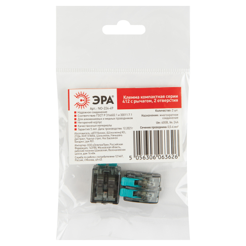 Клеммы СМК компактная с плоско-пружинным зажимом предназначены для многоразового присоединения и ответвления одножильных и многожильных проводников из меди в электрических цепях переменного тока с частотой 50 Гц напряжением до 400 В. Клемма имеет более компактные размеры в сравнении с привычными ручейковыми клеммами, прозрачный корпус позволяет контролировать контакт проводников с контактными пластинами. Корпус клемм изготовлен из самозатухающего пластика, монтаж не требует использования инструментов. Подходит для многоразового использования. При монтаже необходимо снять изоляцию с проводников в соответствии с обозначениями на корпусе клеммы. Поднимите рычажок, вставите проводник в гнездо, опустите рычажок в исходное положение.