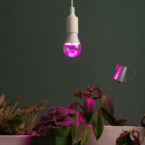 Спектр излучения. Розовое свечение стимулирует фотосинтез и рост растений. Энергоэффективность. Потребляет всего 20 Вт, что снижает затраты на электроэнергию. Долговечность. Светодиодная технология обеспечивает долгий срок службы. Удобство использования. Цоколь E27 позволяет установить лампу в стандартный патрон.