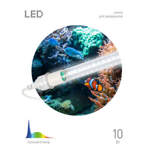 Лампа для аквариума ЭРА FITO-10W-Ra90-Т8-AQUA длиной 884 мм и мощностью 15 Вт, с патронами IP65 и проводом подключения. Готовый комплект для того, чтобы придать аквариуму эстетичный и стильный внешний вид, поддержать развитие аквариумной биосистемы. Кристально чистая вода и эффектная подсветка!