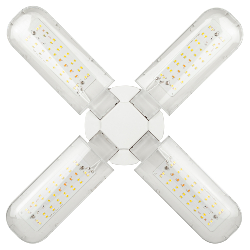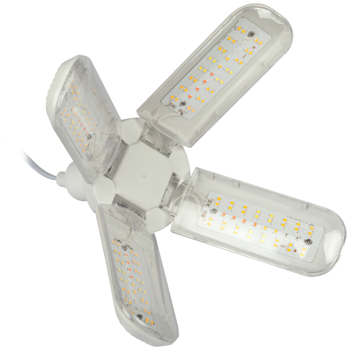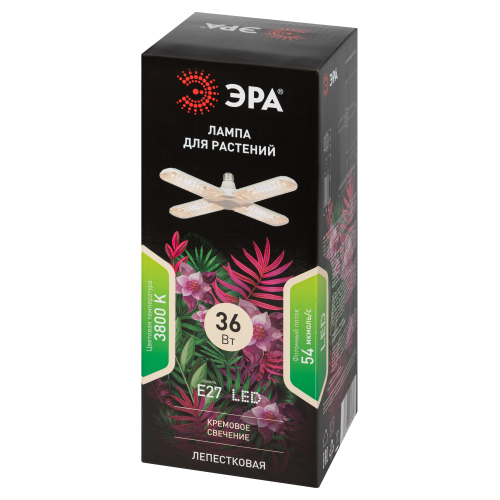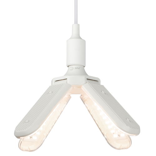 Эта удобная бытовая фитолампа-трансформер полного спектра по своей мощности и эффективности не уступает передовым решениям в освещении растений. Обеспечивает качественную досветку 2 кв м рассады. Бледно-розовое свечение лампы уже стало привычно многим пользователем. Поворотные лепестки позволяют быстро и без усилий изменить направление и интенсивность освещения конкретных растений. Эффектный внешний вид и максимальный комфорт в применении. На каждом лепестке по 40 светодиодов. Каждый лепесток поворачивается на 180 градусов. Индивидуальное регулирование наклона и направления светодиодных "лепестков" дает возможность создать множество уникальных сценариев подсветки растений. Габариты фитолампы: 98-393х250х100 мм. Фотонный поток: 54 мкмоль/с. При минимальных затратах электроэнергии вы получаете такое количество света, которого точно хватит для быстрого роста и активного набора массы рассады. Наличие инфракрасных светодиодов предотвращает вытягивание рассады. Блок питания и светодиоды расположены отдельно. LED-элементы размещены на алюминиевых платах. Каждая плата равномерно распределяет тепло, светодиоды не перегреваются и светят гарантированно 30 000 часов. Прочный негорючий корпус базового белого цвета. Блок питания оснащён варистором, который защищает лампу от высокочастотных помех в сети. Рекомендованная высота от лампы до листьев от 15 до 75 см. Прозрачный рассеиватель и белый глянцевый корпус лампы делают ее максимально энергоэффективной. Лампа-клевер ЭРА FITO-36W-Rа90-E27-FOLD на первый взгляд кажется странной и непривычной, но в лепестковой лампе за счет распределения печатных плат на большой площади проблема со съемом тепла с диодов решается намного легче и дешевле, чем в радиаторных лампах. Полный спектр и эффективность лампы при этом не уступают стандартным решениям от компании ЭРА. За счет применения такого спектра лампа универсальна и подходит для любых видов и сортов растений в т.ч. на стадии роста.
