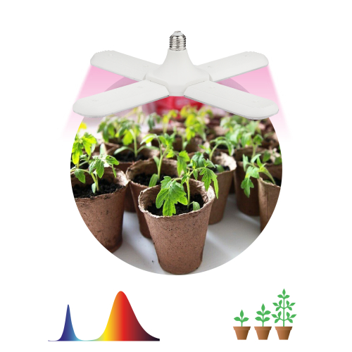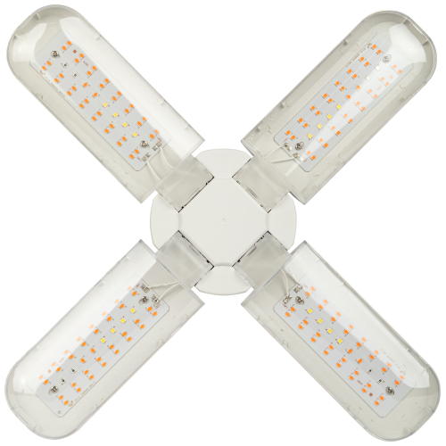Бытовая лепестковая фитолампа с регулируемым наклоном каждого из 4 модулей. С распространённым цоколем Е27. Необычная конструкция обусловлена не столько эстетикой, сколько физикой! Мы не просто впечатляем покупателя, а выпускаем бытовую фитолампу, которая по своей мощности и эффективности не уступает профессиональному фитопрожектору.