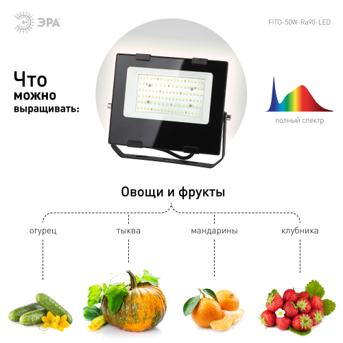 Фитолампа FITO-50W-Ra90-LED мощностью 50 Вт от компании ЭРА в полной мере обеспечит Ваши цветы, фрукты и овощи светом в теплицах, оранжереях, а также в домашних условиях. Мечта вырастить и собрать собственный урожай больше не покажется сказкой!