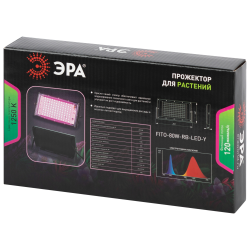 Фитопрожектор для растений светодиодный ЭРА FITO-80W-RB-LED-Y красно-синего спектра со скобой 80 Вт позволит Вам с легкостью закрепить его на любой поверхности. Корпус прожектора легкий, воздушная конструкция позволит применить мощное решение дяже на Вашем подоконнике. Данный прожектор легко впишется в минималистичный домашний интерьер. Свет прожектора ярко розовый, спектр красно-синий. Данного прожектора с легкостью хватит, чтобы вырастить рассаду для дачного участка. Необходимо выдерживать правильные расстояния от прожектора до рассады. Минимальное расстояние - 25 см. Максимальное полезное расстояние не более 0,5 м. до листьев рассады. Прожектор укомплектован шнуром 1,5 м с евро вилкой для подключения в сеть питания 220 В, 50 Гц.