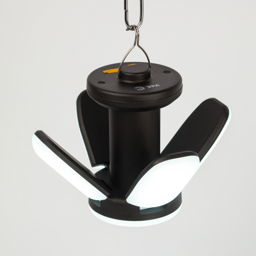 Данный аккумуляторный LED-фонарь изготовлен из лёгкого прочного пластика, что делает его оптимальным решением для похода. Для подвешивания на палатку, тент или ветку имеется надёжный металлический крючок. Множество режимов работы: 1 - максимально яркое свечение лепестков, 2 - приглушённое свечение лепестков, 3 – яркое свечение центральной лампы, 4 – приглушённое свечение центра, 5 – свечение всех LED-элементов, 6 – аварийное мигание. От одной полной подзарядки непрерывно светит до 14 часов.