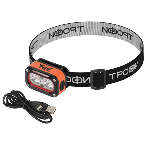 Фонарь налобный светодиодный ЭРА GA-812 Orange аккумуляторный, 3+3 Bт, сенс.управл., 5 режимов, USB
