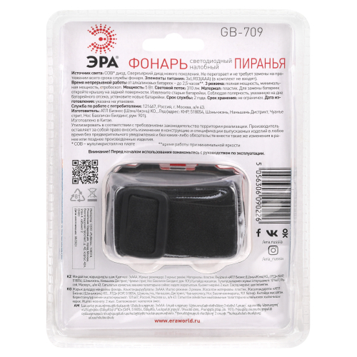 ЭРА GB-709 "Пиранья" 3-режимный налобник в красном корпусе. Фонарик имеет COB-матрицу, создающую свет дальностью 20 метров. Микросветодиоды на плате не перегорают и не требуют замены на протяжении всего срока использования. Корпус изготовлен из ударопрочного пластика. Для работы налобника нужны три мизинчиковые батарейки. Одного комплекта алкалиновых элементов питания хватает на 2,5 часа непрерывного свечения. Три режима помогут вам в любой ситуации, когда необходим свет повышенной яркости, освещение средней яркости, стробирование. Направление света фонаря можно изменять.