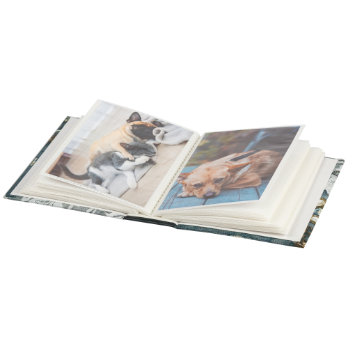 Фотоальбом на 100 фотографий , размер фото 10*15, 1-но фото на странице , крепление - термосварка, листы из ПВХ, бумажная обложка.
