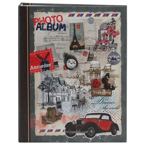 Фотоальбом на 200 фотографий , размер фото 10*15, 2-а фото на странице , крепление - термосварка, листы из ПВХ, бумажная обложка.