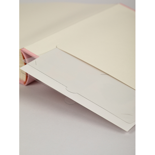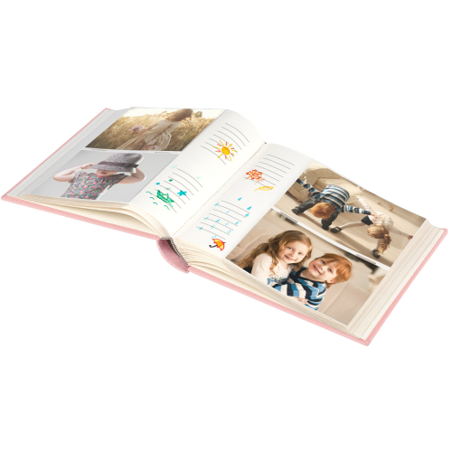 Обложка из плотного картона из PU с окошками. Внутри содержится блок из 50 белых листов. Альбом рассчитан на 200 фотографий форматом 15 см х 10 см. Для фотографий предусмотрено поле для записей. На каждой странице с фиксатором-окошком из полипропилена можно разместить по 2 фотографии. Переплет книжный.