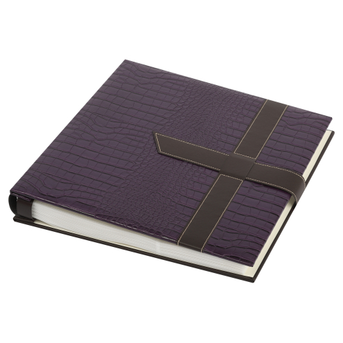 Обложка из плотного картона с обложкой из PVC с вышивкой . Внутри содержится блок из 50 чёрных листов. Альбом рассчитан на 500 фотографий форматом 15 см х 10 см. На каждой странице с фиксатором-окошком из полипропилена можно разместить по 5 фотографии. Переплет книжный.