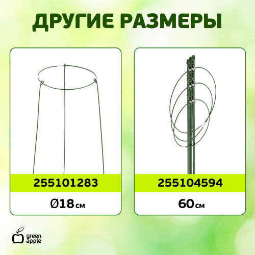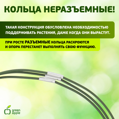 Опора для растений GREEN APPLE GAFS-3-14 высотой 28 см позволит вырастить аккуратные и здоровые растения, задавая им нужное направление роста. Опора-кольцо выполнена из металла и защищена пластиковой оплеткой, которая предотвращает появление коррозии. Поддержка декоративная для цветов используется в качестве опоры для садовых и комнатных растений. Незаменима при создании сложных декоративных конструкций на балконах, террасах и дачных участках. Легко и без усилий устанавливается в грунт и надежно закрепляется.