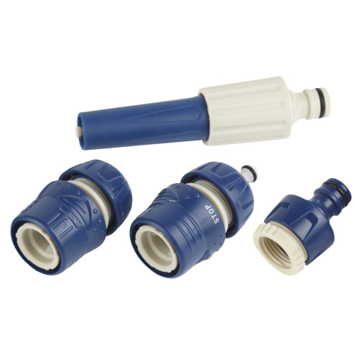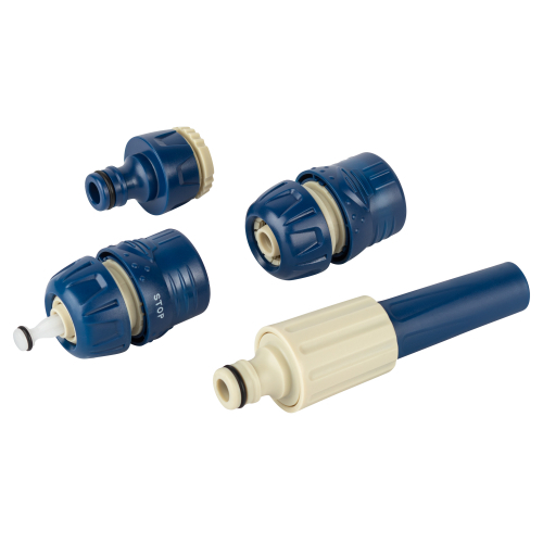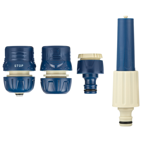 Комплект для полива GREEN APPLE Применяется для полива растений. В представленный набор входят следующие аксессуары: наконечник, штуцер и 2 коннектора (один с аквастопом). Комплектация позволяет собрать с помощью шланга поливочную линию и подключить ее к крану или водопроводной трубе с резьбой 1/2” или 3/4”. Благодаря коннектору с аквастопом смену насадок можно производить без отключения подачи воды. При отсоединении насадки вода автоматически перестает течь, а при подключении новой насадки поток воды возобновляется. Каждый садовод оценит качество и удобство аксессуаров для полива от Green Apple!