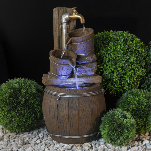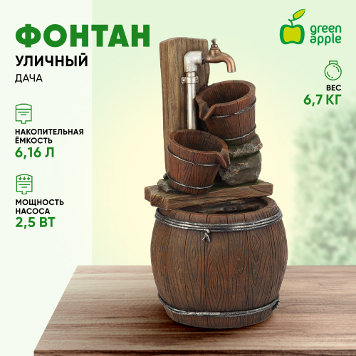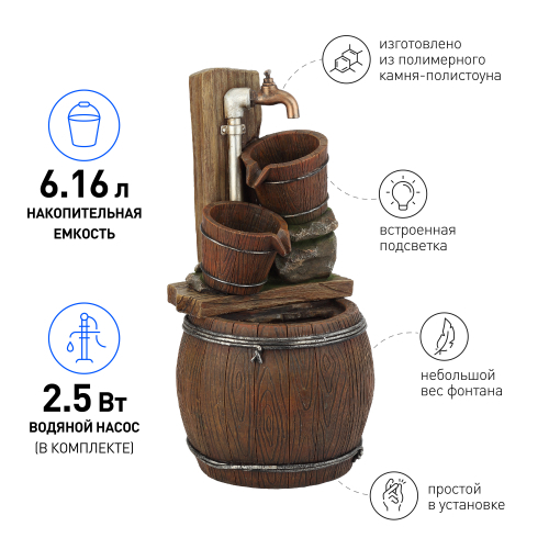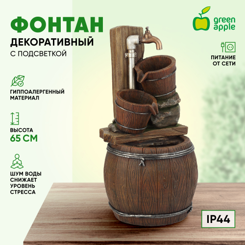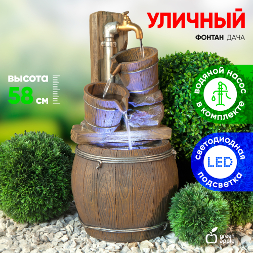 Садовые фонтаны — отличное решение, если Вы хотите украсить ландшафт участка своего загородного дома, коттеджа или дачи с минимальными затратами сил и средств. В последнее время садовыми фонтанами облагораживают территории не только частных домовладений, но и общественных мест для отдыха: ресторанов, кафе, гостиниц, санаториев, пансионатов, парков, скверов и т. д. Этот фонтан высотой 65 см внесет новизны в пейзаж Вашего дачного участка. Светодиодная подсветка добавит атмосферы загадочности. Работает от сети.
