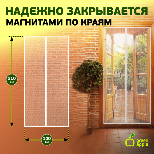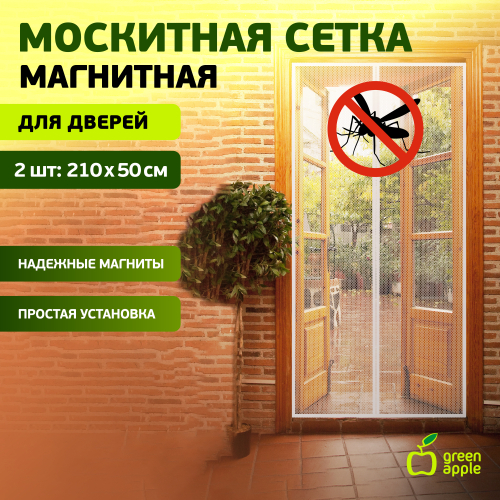 Эффективную защиту от проникновения в помещение различных насекомых обеспечит москитная сетка от комаров на магнитах Green Apple GBN007. Две москитные сетки имеют размеры 210 см на 50 см, антимоскитная сетка устанавливаеся на дверь. Вес изделия составляет 360 г. Ловушка надежно закрывается благодаря магнитам, расположенным по краям. Частое плетение сетки не пропускает самых мелких насекомых.