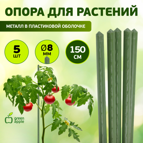 Опора для растений "Green Apple" высотой 150 см выполнена из высококачественного металла, покрытого цветным пластиком - эти материалы безопасны для растений и цветов. В наборе 5 опор, выполненных в виде ствола растения. Такие опоры широко используются для поддержки декоративных садовых и комнатных растений. Также могут применятся для поддержки вьющихся растений в парниках. Крепкие опоры позволят задать правильное направление роста и вырастить здоровые растения. Зеленый цвет сливается с листвой, поэтому поддержка незаметна.
