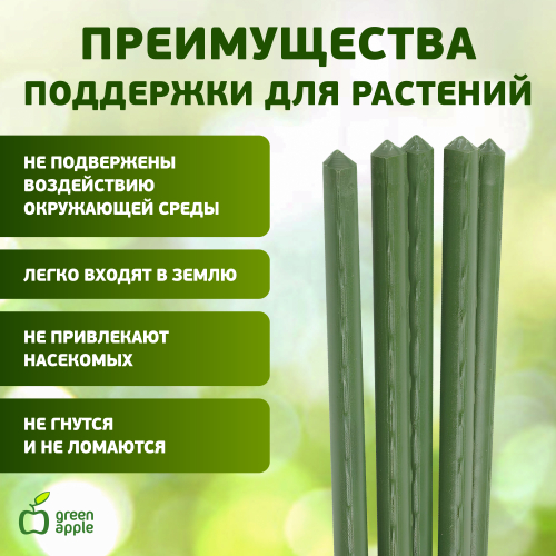 Опора для растений "Green Apple" высотой 180 см выполнена из высококачественного металла, покрытого цветным пластиком - эти материалы безопасны для растений и цветов. В наборе 5 опор, выполненных в виде ствола растения. Такие опоры широко используются для поддержки декоративных садовых и комнатных растений. Также могут применятся для поддержки вьющихся растений в парниках. Крепкие опоры позволят задать правильное направление роста и вырастить здоровые растения. Зеленый цвет сливается с листвой, поэтому поддержка незаметна.