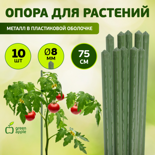 Опора для растений "Green Apple" высотой 75 см выполнена из высококачественного металла, покрытого цветным пластиком - эти материалы безопасны для растений и цветов. В наборе 10 опор, выполненных в виде ствола растения с шипами. Такие опоры широко используются для поддержки декоративных садовых и комнатных растений. Также могут применятся для поддержки вьющихся растений в парниках. Крепкие опоры позволят задать правильное направление роста и вырастить здоровые растения.