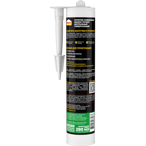 Герметик силиконовый Момент Гермент Нейтральный - не вызывает коррозии металлов, не вступает в реакцию со щелочными поверхностями, подходит для герметизации ванн, душевых кабин, раковин, зеркал.