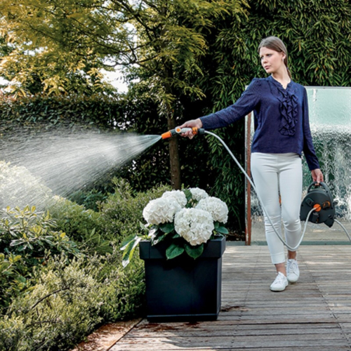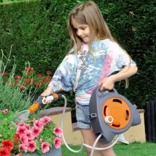 Катушка для шланга в мини-версии идеально подходит для полива растений, цветов и горшков, размещенных на террасах, балконах, верандах и в небольших садах. Благодаря двойному режиму использования (транспортировка и хранение), она чрезвычайно практична во время использования, поскольку компактена, легка и имеет новый привлекательный дизайн, который делает отдых на свежем воздухе еще более приятным.