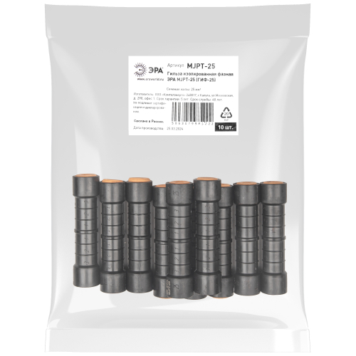 Гильзы ЭРА ГИФ-25 предназначены для соединения токопроводящих жил СИП-2 и СИП-4 в пролетах с несущей нейтралью. Внутренняя полость алюминиевой части заполнена контактной смазкой, предохраняющей поверхность алюминия от окисления, снижающей контактное сопротивление, что приводит к значительному снижению потерь электроэнергии. Опрессовка производится при помощи гидравлических или механических прессов.