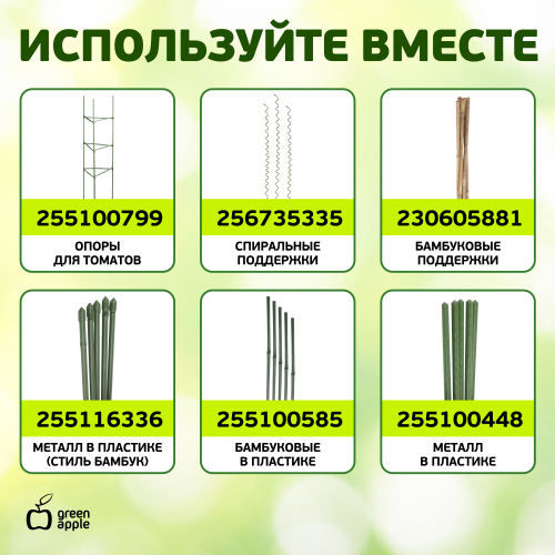 Кольца и цепочки садовые используются для подвязки хрупких и высоких растений, легко гнутся и не травмируют. Применяется для закрепления растений на опоре, предотвращая повреждения и стимулируя правильный рост. Изделие эластичное, легко изгибается в нужном направлении, тем самым не наносит травму стеблю или ветвям. Легко и без усилий открываются. Рекомендуем использовать в комбинации с садовыми опорами для растений Green Apple. С профессиональными аксессуарами от компании Green Apple работа в саду всегда в радость!