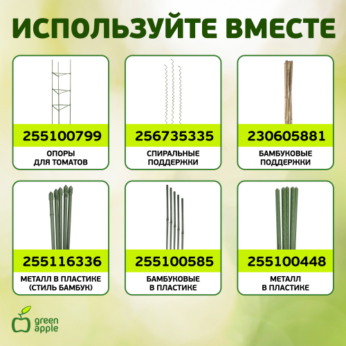 Кольца используются для подвязки хрупких и высоких растений, легко гнется и не травмирует. Применяется для закрепления растений на опоре, предотвращая повреждения и стимулируя правильный рост. Изделие эластичное, изгибается в нужном направлении, тем самым не наносит травму растению. Крепится на опоре, обвивает растение, стимулируя его правильный рост. В наборе кольца разного размера, чтобы Вы могли подобрать оптимальный. Легко открываются. С аксессуарами Green Apple работа в саду всегда в радость!