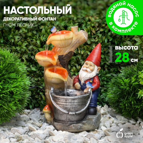 Садовые фонтаны — отличное решение, если Вы хотите украсить ландшафт участка своего загородного дома, коттеджа или дачи с минимальными затратами сил и средств. В последнее время садовыми фонтанами облагораживают территории не только частных домовладений, но и общественных мест для отдыха: ресторанов, кафе, гостиниц, санаториев, пансионатов, парков, скверов и т. д. Украсьте пейзаж Вашего сада с фонтаном GREEN APPLE GAFN01-504 Гном Лесник. Этот симпатичный житель дачного участка поднимет настроение своим видом, а наблюдение за течением воды позволит Вам расслабиться