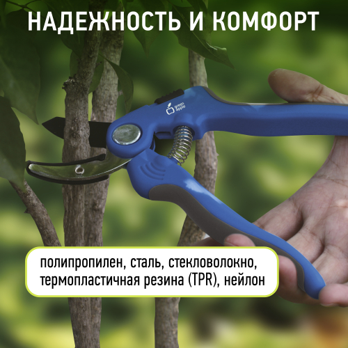 Секатор Green Apple GTBS60-006 является эффективным и надежным инструментом для выполнения обрезки веток и побегов максимальным диаметром до 16 мм. Подходит для обрезки виноградной лозы. Особая конструкция режущих лезвий, которые изготовлены из долговечной стали, обеспечивает чистый и аккуратный срез без прилипания. Закругленное опорное лезвие способствует надежному удержанию ветки при выполнении работы. Рукоятки с нескользящими накладками гарантируют удобное удержание секатора Green Apple GTBS60-006. Блокировочный механизм с фиксатором удерживает режущую часть в закрытом положении для повышения безопасности эксплуатации.