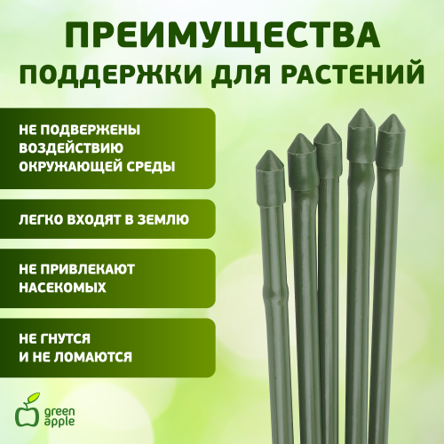 Опора для растений - это садовый аксессуар, предназначенный для поддержки тонкого стебля или ствола растения в вертикальном положении. Поддержка изготовлена из металла, покрытого пластиком - эти материалы не наносят вред здоровью рассады, безопасны для окружающей среды. Широко используются для поддержки декоративных садовых и комнатных растений. Также применяется для поддержки вьющихся растений в парниках. Держатель втыкаемый фиксируется в почве в горшке или на участке. Дополнит композицию и обеспечит бережный уход. Цвет: зеленый. Высота 75 см, диаметр 8 мм.