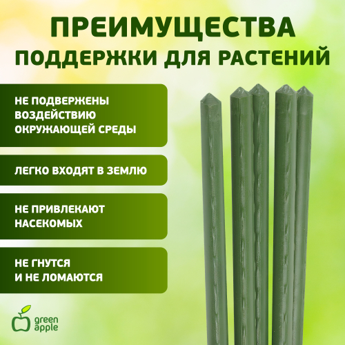 Опора для растений "Green Apple" высотой 120 см выполнена из высококачественного металла, покрытого цветным пластиком - эти материалы безопасны для растений и цветов. В наборе 5 опор, выполненных в виде ствола растения. Такие опоры широко используются для поддержки декоративных садовых и комнатных растений. Также могут применятся для поддержки вьющихся растений в парниках. Крепкие опоры позволят задать правильное направление роста и вырастить здоровые растения. Зеленый цвет сливается с листвой, поэтому поддержка незаметна.