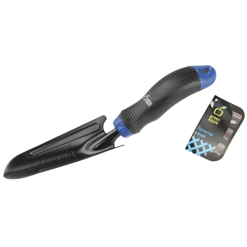 Узкая лопатка Green Apple применяется для посадки и пересаживания растений. Молибден - защита от коррозии и налипания грязи. Эргономичная форма ручки. Термопластичная резина с противоскользящими свойствами обеспечивает надежный захват. Лопатка подходит для широкого спектра садовых задач, стойка к износу благодаря качественным материалам. С инвентарем Green Apple работа в саду всегда в радость!