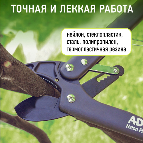 Контактный сучкорез от торговой марки Green Apple, модель GTRL12-009, обеспечивает аккуратную подрезку веток декоративных кустарников, а также плодовых деревьев в саду. Модель укомплектована удобными ручками, которые изготовлены из стеклопластика для уменьшения веса инструмента. Они обладают достаточной длиной для работы даже с ветками, находящимися на значительной высоте. Кроме того, рукояти оснащены мягкими накладками с пружинящим эффектом из термопластичной резины, что гарантирует антискользящий эффект при работе и безопасный захват.
