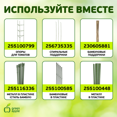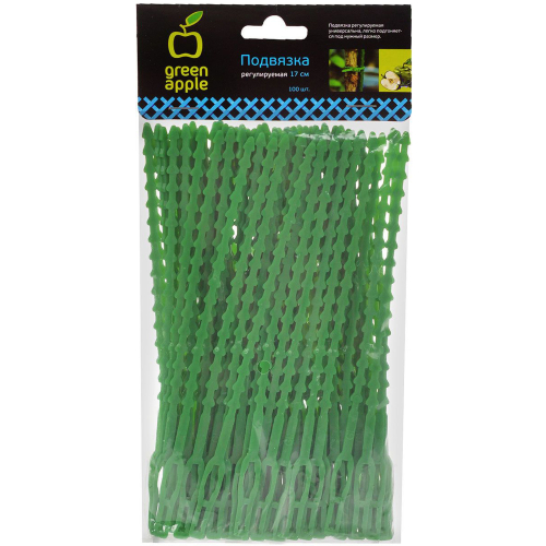 Садовая подвязка для растений Green Apple регулируемая - пластиковое приспособление для фиксации стеблей возле опоры, которая способствует правильному развитию растения и направлению роста побега. Преимущества: пластиковая подвязка не травмирует руки и не повреждает перчатки; зубчатый механизм позволяет регулировать подвязку под любой размер; натуральный цвет сливается с зеленью растений и не нарушает гармонию садовых композиций. Надежно держится и не раскрепляется. Длина 17 см, в комплекте 100 штук. Цвет: зеленый.