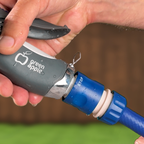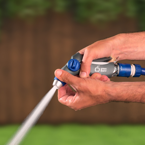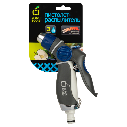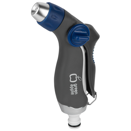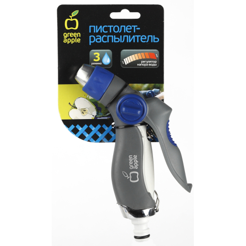 Пистолет-распылитель "Green Apple" предназначен, в зависимости от режима, для решения различных задач по поливу и проведению очистительных работ. Снабжен регулятором изменения интенсивности струи и фиксатором для длительного полива. Режимы легко и плавно переключаются поворотным регулятором на корпусе.