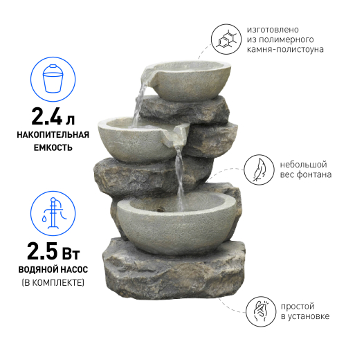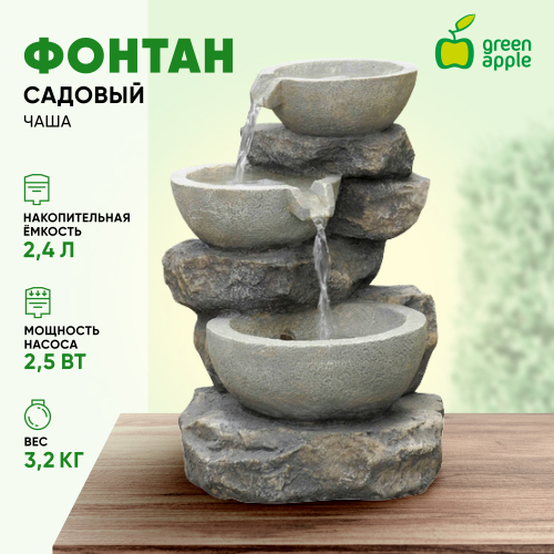 Садовые фонтаны - отличное решение, если Вы хотите украсить ландшафт участка своего загородного дома, коттеджа или дачи с минимальными затратами сил и средств. В последнее время садовыми фонтанами облагораживают территории не только частных домовладений, но и общественных мест для отдыха: ресторанов, кафе, гостиниц, санаториев, пансионатов, парков, скверов и т. д. Садовый фонтан GREEN APPLE GWXF02930 Чаша Б0008227 - прекрасное украшение для дачи и загородного дома. Выдерживает любые внешние воздействия, поэтому обладает прочностью и долговечностью.