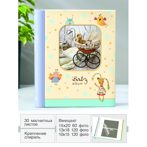 Фотоальбом с магнитными листами , размер листов 23*28 , крепление -спираль , обложка -картон , 30 магнитных листов, тематика - детская