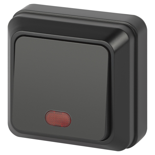 Выключатель одноклавишный с подсветкой серии Intro Quadro открытой установки цвет антрацит 2-102-05. Номинальные характеристики 10А 250В. Выключатель выполнен из качественного термопласта, стали и латуни, оснащён винтовыми зажимами.