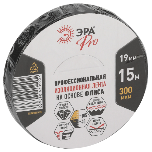 ЭРА Pro PROFLEEC1915 - профессиональная изолента на флисовой основе. Чаще всего применяется как автомобильная изолента. Обеспечивает защиту проводов от негативного воздействия экстремальных температур и механических повреждений. С помощью изоляционной ленты на флисе обматывают электрические провода для уменьшения шума, снижения вибрации, скрипа в салоне автомобиля. Новая изолента ЭРА Pro на основе флиса - идеальное решение для обмотки проводов в моторном отсеке, особенно в зонах повышенного трения.