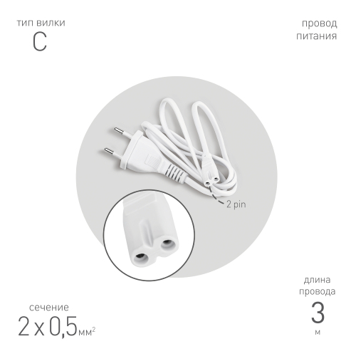 ***Совместимость:*кабель подходит для большинства линейных фитосветильников. Длина: 3 метра.