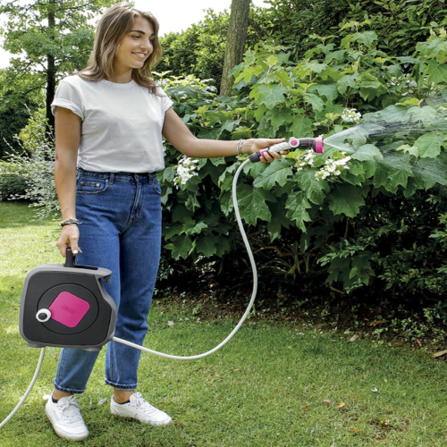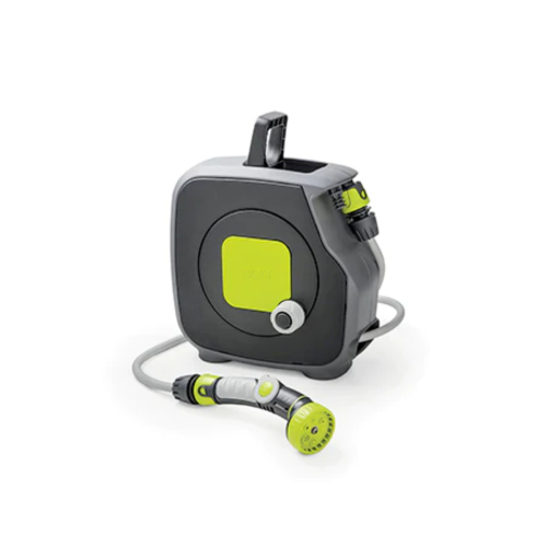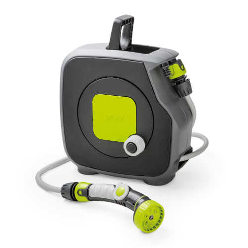 Новая катушка для шланга в мини-версии идеально подходит для полива растений, цветов и горшков, размещенных на террасах, балконах, верандах и в небольших садах. Благодаря двойному режиму использования (транспортировка и хранение), он чрезвычайно практичен во время использования, поскольку он компактен, легок и имеет новый привлекательный дизайн, который делает отдых на свежем воздухе еще более приятным. Оснащен: